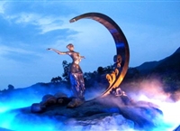 那月宮中寂寞的嫦娥,一定在空中窺見了這如袂如帶、拂動于山巔的月光。觸景生情,是否回憶起當(dāng)年無奈飛天時,那眷戀凡間飄浮空中的羅帶,這一別,何止千年。而明月山上的人們,舉杯邀明月,望見杯中的明月時,則會欣喜地一飲而盡,希望在飄飄欲仙的酒意中,感受一回那飛天的意境。